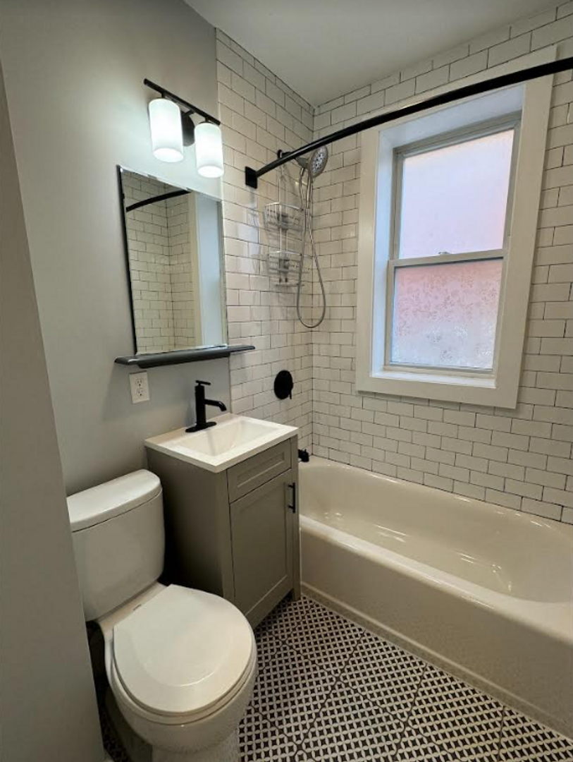 Spacious and modern unit featuring hardwood floors, granite counters, stainless steel appliances, a tiled bathroom, in-unit laundry, and tons of natural light! Heat/hot water included in rent!