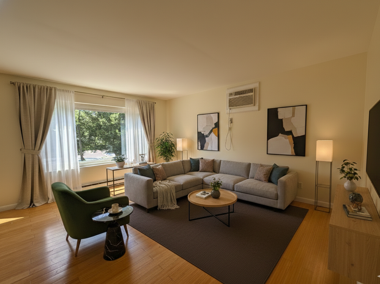 This renovated two-bedroom features hardwood floors, spacious bedrooms, large living room windows, an open floor plan, and a separate eat-in kitchen. Renovated kitchen includes updated floors, granite countertops, and stainless steel appliances. The apartment features UNBELIEVABLE CITY VIEWS FROM THE LIVING ROOM, laundry onsite, and one off-street parking spot.