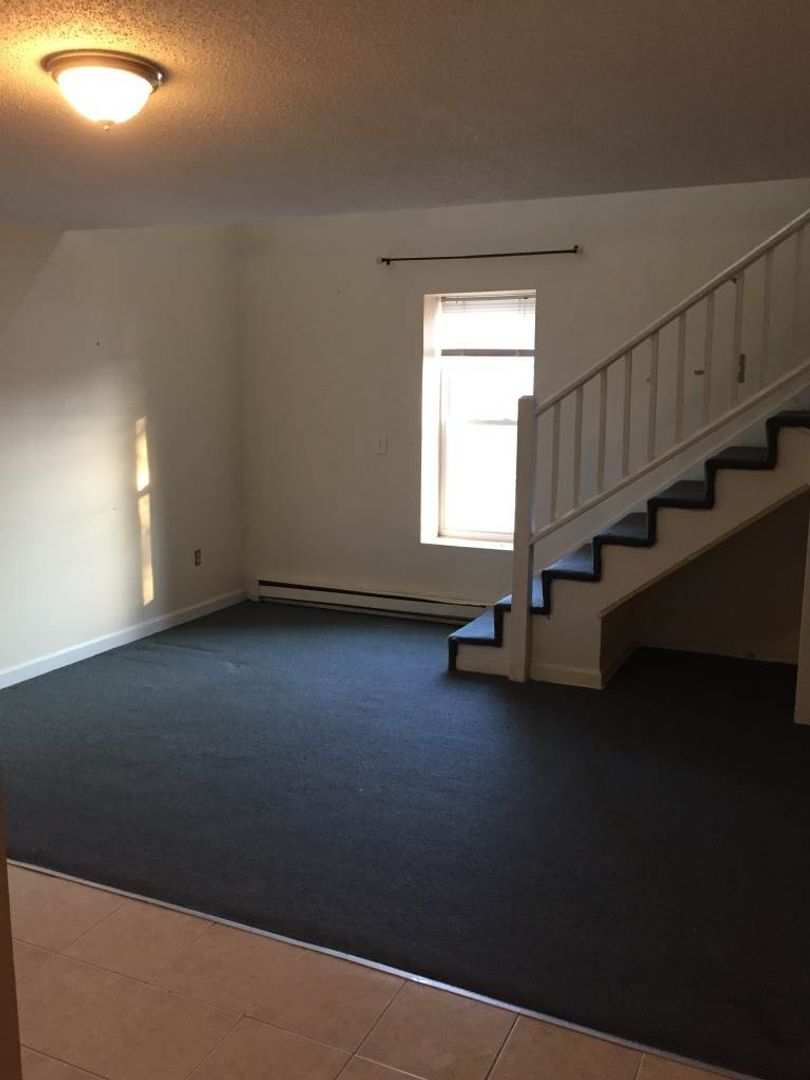 This comfy one bedroom loft offers 2 levels of living space! Featuring an updated kitchen, carpeted floors, an updated bathroom, tall ceilings, and laundry on-site! Hot water is included in rent, and laundry is provided on the first floor!